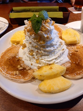 豪華な趣向を凝らしたパンケーキは見ごたえも食べごたえもある。